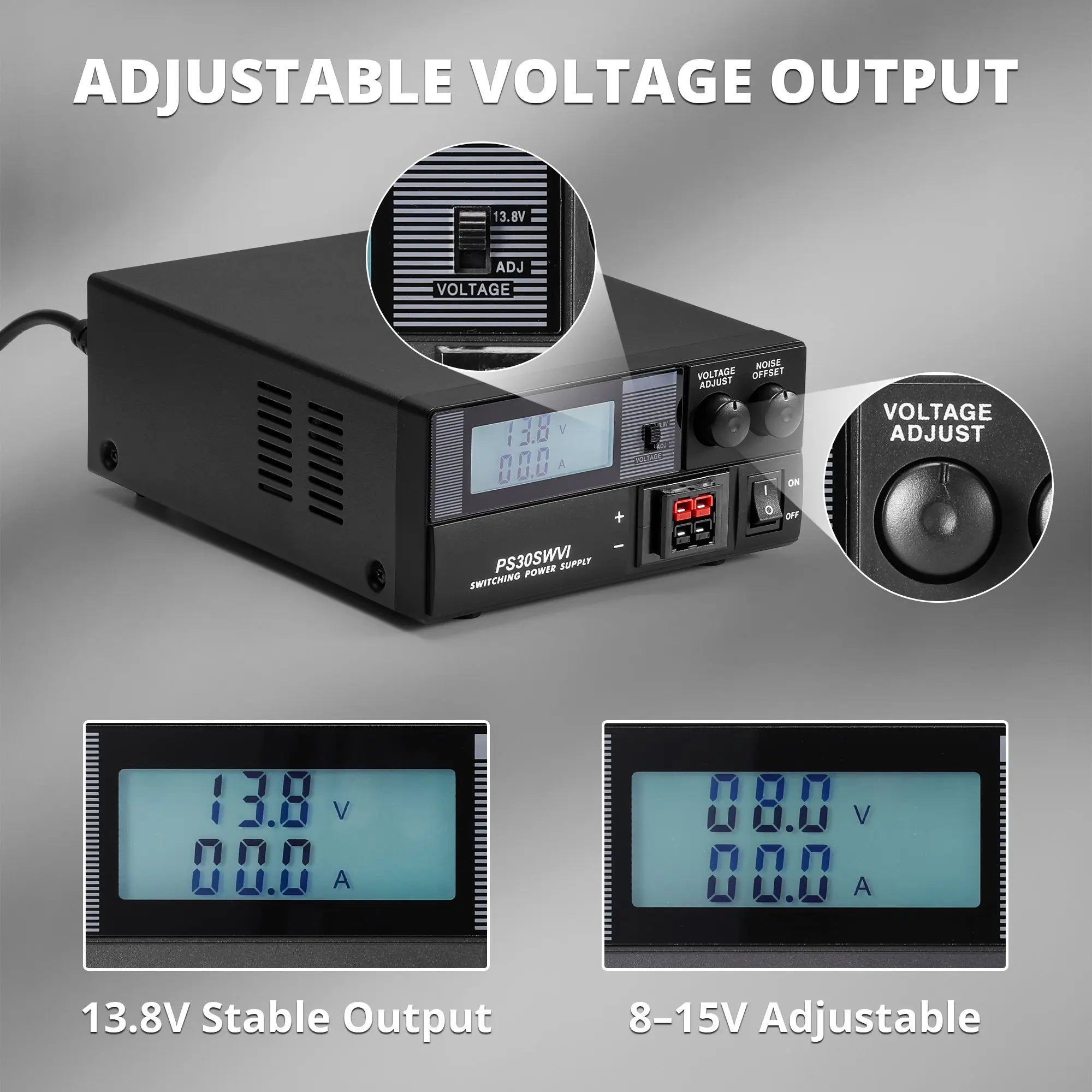 AC to DC Conversion: Converts standard 110V AC mains into a stable 13.8V DC output, with an adjustable range of 8–15V to power a wide variety of radios and DC devices.