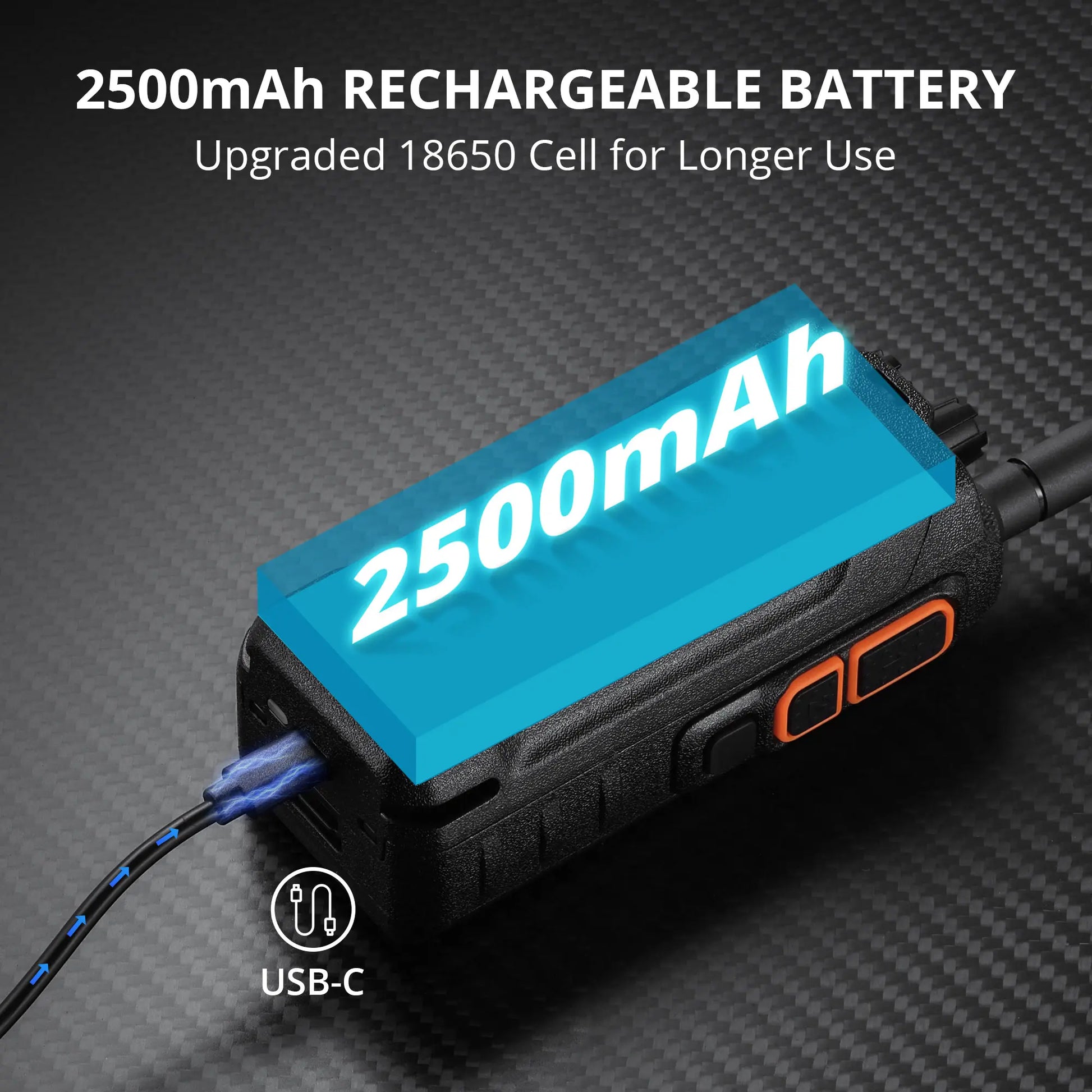 Powered by a high-capacity 2500mAh rechargeable 18650 cell, it supports 2A USB-C fast charging, delivers stable discharge for consistent performance, and lasts longer than standard batteries.